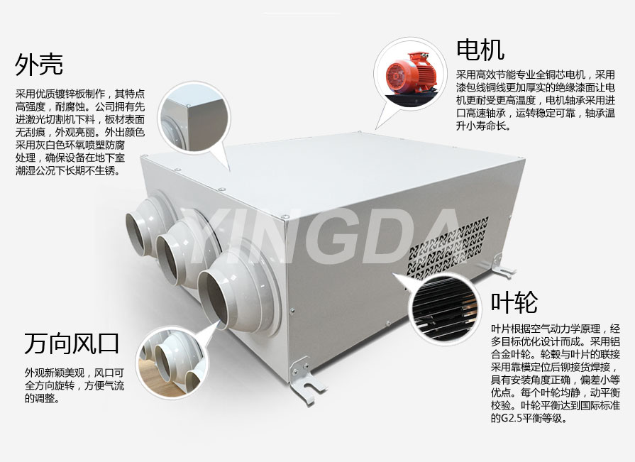英達(dá)風(fēng)機(jī)采用優(yōu)質(zhì)鍍鋅板制作,其特點(diǎn)高強(qiáng)度,耐腐蝕。公司擁有先進(jìn)激光切割機(jī)下料,板材表面無刮痕,外觀亮麗。外出顏色采用灰白色環(huán)氧噴塑防腐處理,確保設(shè)備在地下室潮濕公況下長期不生銹。