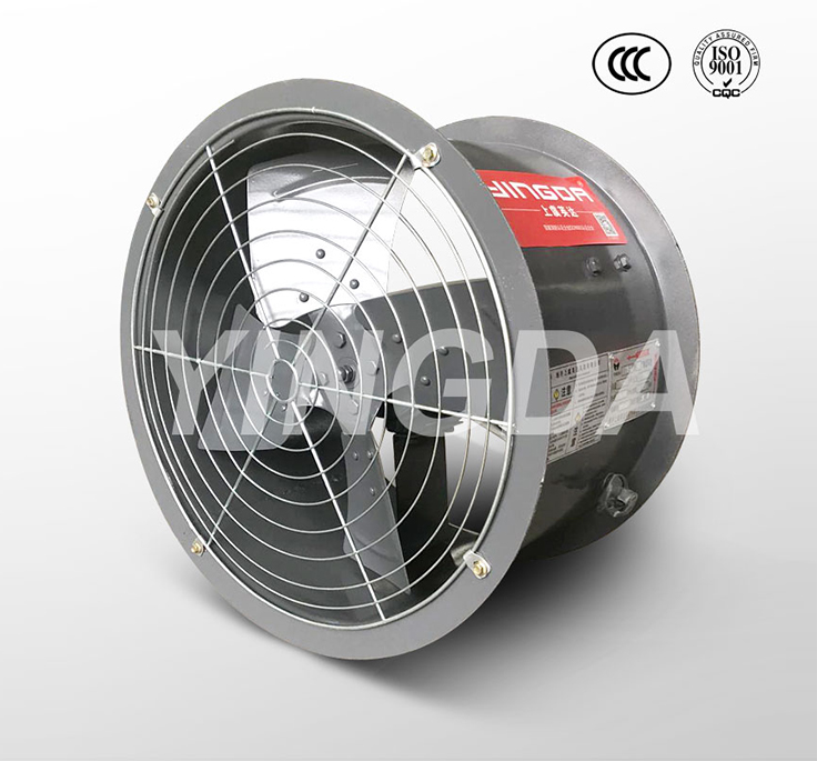 1.2.按直徑分為250~1100mm共14種規(guī)格,每一規(guī)格風機葉片數(shù)都為4片,參數(shù)范圍廣,風量800~65000 m3/h,風壓40~470Pa。風機可壁式安裝也可管道式安裝。